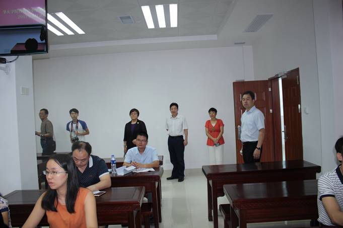 在周苏平副董事长的陪同下,到访领导们首先参观了我中心板书长廊、师德与传统文化室、书画训练室、普通话测试站、远程交互中心、教师信息能力训练室、团体心理辅导室、个体心理辅导室、教师形象室、智慧教室、微课录制室等多个功能室。在参观过程中,yl34511线路中心经理肖起清向到访领导详细介绍了yl34511线路中心省级中小学教师发展中心的设计思路及中心正式运行一年多来所开展的各项工作,阐述了yl34511线路中心在师范生职前培养和职后培训方面的育人理念,以及各功能室的定位、用途与使用情况。领导们对我中心教师教育职前职后一体化的硬软件建设表达了充分的肯定,并希望我中心能够坚持内涵建设与育人理念,更好地发挥平台作用,促进华南地区教师教育工作的大发展。