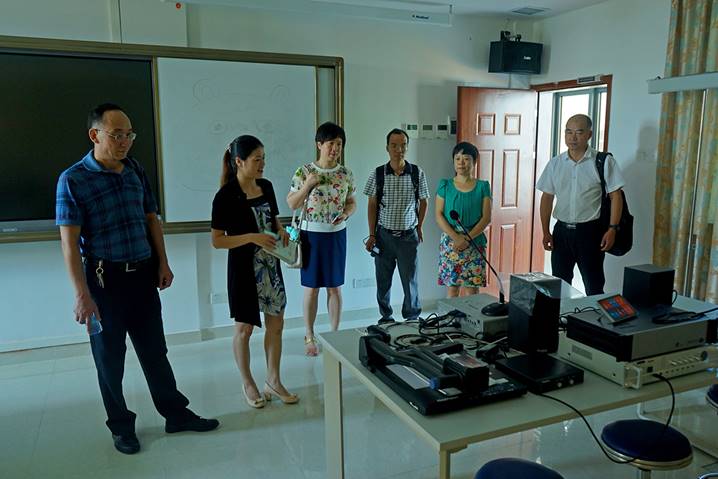 接着,客人们在肖晓玛副主任等的陪同下参观了我中心书画训练室、普通话测试站、远程交互中心、教学设计与反思室、教师信息能力训练室、团体辅导室、个体辅导室、智慧教室、教师形象室等多个功能室。客人们对我中心职前职后教师教育一体化及先进的功能室设备大加赞赏。