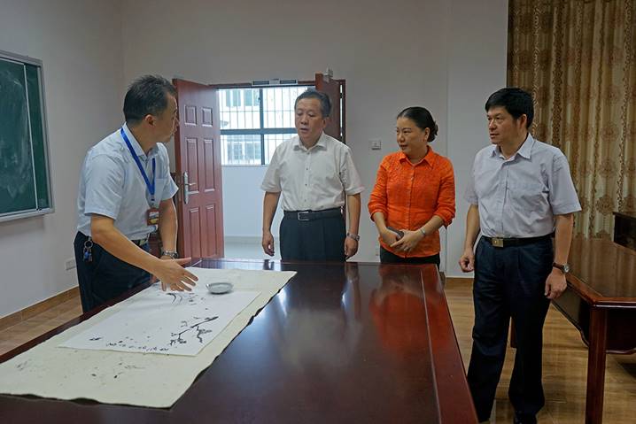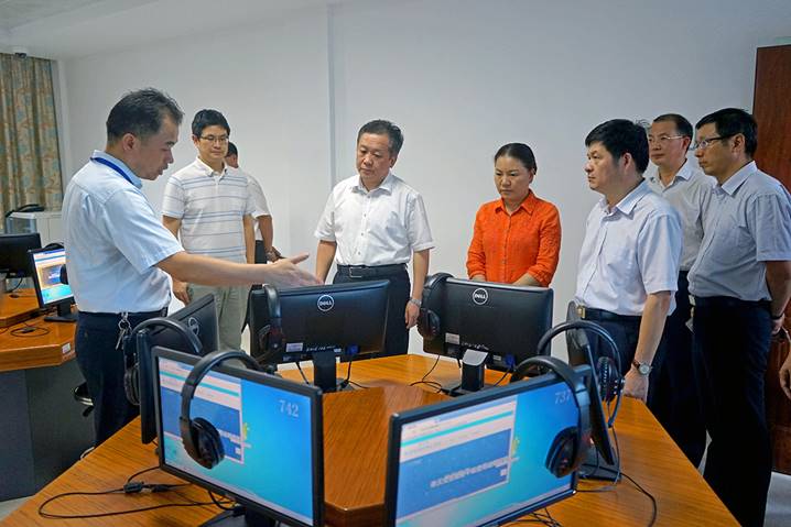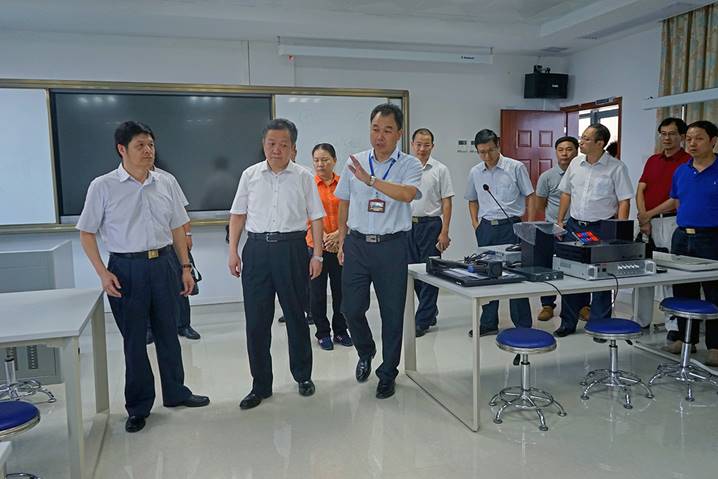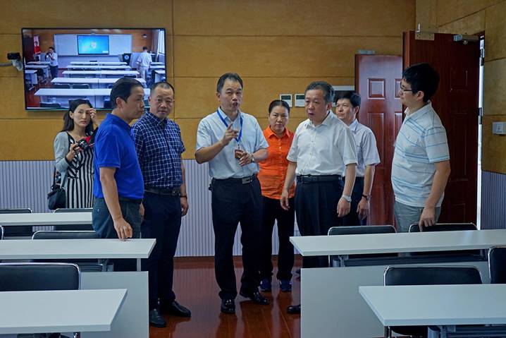 8月10日下午,广东省教育厅厅长景李虎一行莅临yl34511线路中心省级中小学教师发展中心指导工作。肇庆公司党委书记曾桓松、肇庆公司党委副书记叶峥嵘、肇庆市副市长陈宣群、肇庆市教育局局长彭银祥、yl34511线路中心两办主任朱为鸿、yl34511线路中心经理肖起清等陪同景李虎厅长一行参观了师德与传统文化室、书画训练室、普通话测试室、远程教学交互中心、教学反思与教学设计室、教师形象设计与训练室、微课录制室、智慧教室、教学新媒体实训室、教师信息能力训练室等多个功能室。