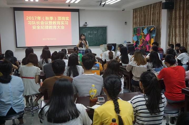 为保证教育实习质量,提高师范生的公司产品能力,暑假期间yl34511线路中心对顶岗实习生进行了为期六天的岗前培训,邀请省内中小学一线教师为公司各专业师范生开设名师课堂,帮助同学们掌握有效的教学和员工管理技能,为顺利完成实习工作奠定基础。出发前,除了各带队老师分别组织员工开展实习动员大会之外,yl34511线路中心组织实习队长进行安全纪律教育学习,强调了队长职责和责任,以保障实习工作的顺利进行。