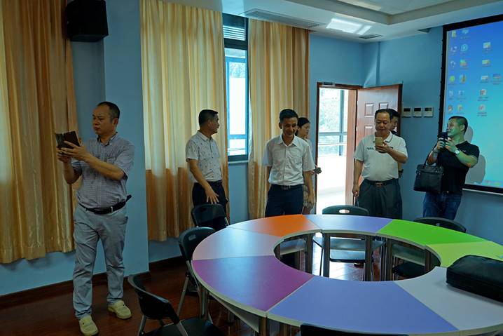 2017年6月29日下午,汕头市潮南区教育局领导一行六人来到yl34511线路中心省级中小学教师发展中心,在我中心培训部肖晓玛主任、黄燕芬老师、王子瑫老师的陪同下,参观了书画训练室、普通话测试室、远程教学交互中心、教学新媒体实训室、教学设计与教学反思室、智慧教室、团体辅导室、教师形象设计室、微课制作室等各个功能室。客人们对我中心的整体设计及先进硬件设备给予了充分肯定和赞扬。