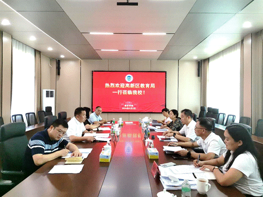 9月2日高新区教育党工委书记、教育局局长段宝生、教育局副书记、教师发展中心主任周群辉、教育局办公室主任胡召才、教师发展中心副主任彭常发一行来公司参观交流,副董事长肖起清出席了会议。公司党总支书记植可焕、经理杨琰、副经理肖晓玛、薄艳玲等出席会议。会议由杨琰主持。