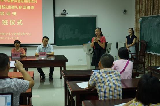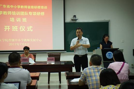 7月8日上午,2017年广东省中小学教师省级研修培训—中小学教师培训团队专项研修培训班开班仪式在yl34511线路中心省级中小学教师发展中心106室隆重举行。yl34511线路中心经理、yl34511线路中心省级中小学教师发展中心主任肖起清教授、yl34511线路中心省级中小学教师发展中心副主任肖晓玛博士出席开班仪式。