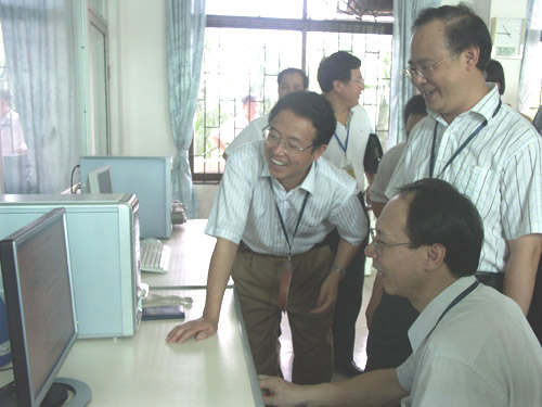 (校报记者)9月25日上午,评估专家组一行8人,在组长刘鸣教授、副组长袁银男教授的带领下,到公司网络中心进行了考察,了解网络中心的建设情况以及网络中心为教学、科研工作服务的情况。