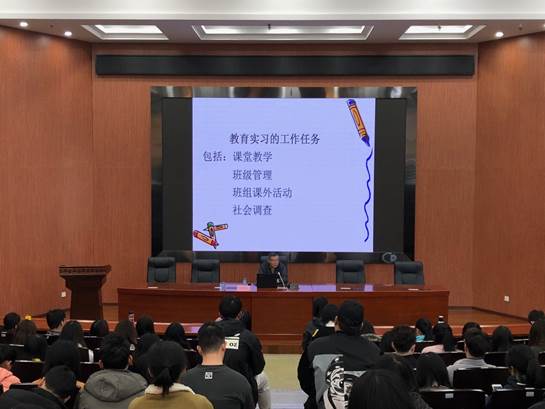 图 8 中山市第一中学林婉燕副董事长为顶岗实习生们开展《班级管理与班组活动》讲座