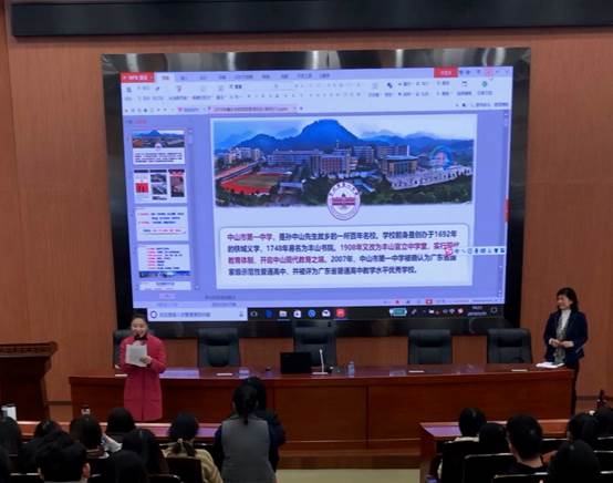 图 7 yl34511线路中心春季顶岗实习生岗前培训班主任曾鸣老师对中山市一中林婉燕董事长进行介绍