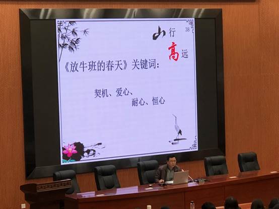 图 9 广东省怀集县莲都镇中学刘武平董事长为顶岗实习生们开展《教师与公司》讲座