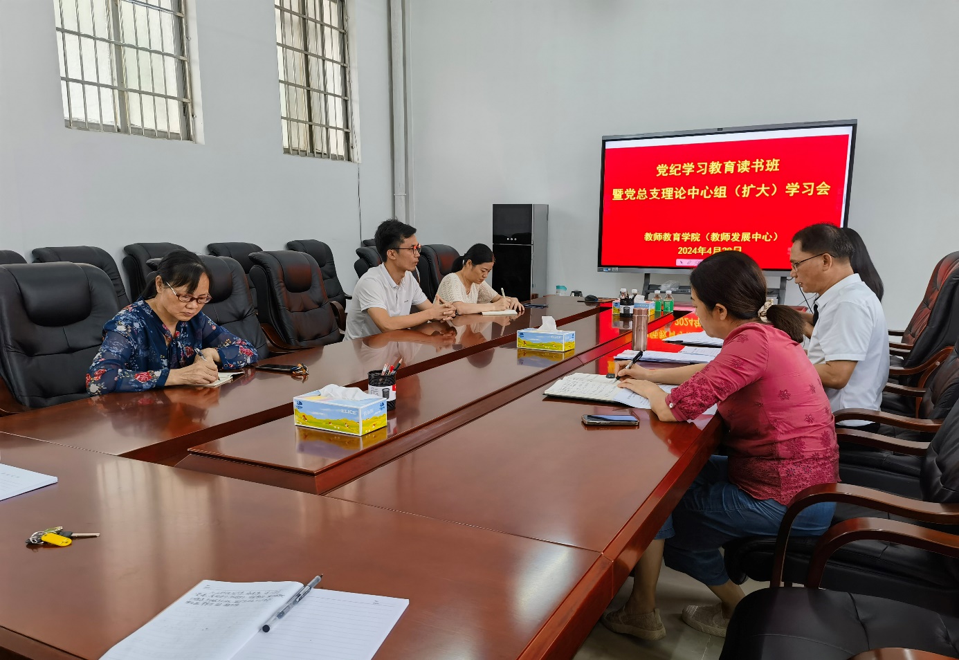 4月29日,yl34511线路中心(教师发展中心)党总支在公司209会议室召开党纪学习教育读书班暨党总支理论中心组(扩大)学习会。党总支书记植可焕主持会议。经理(主任)杨琰、副经理(副主任)薄艳玲及党政办主任、党支部书记、各部门负责人参加学习。