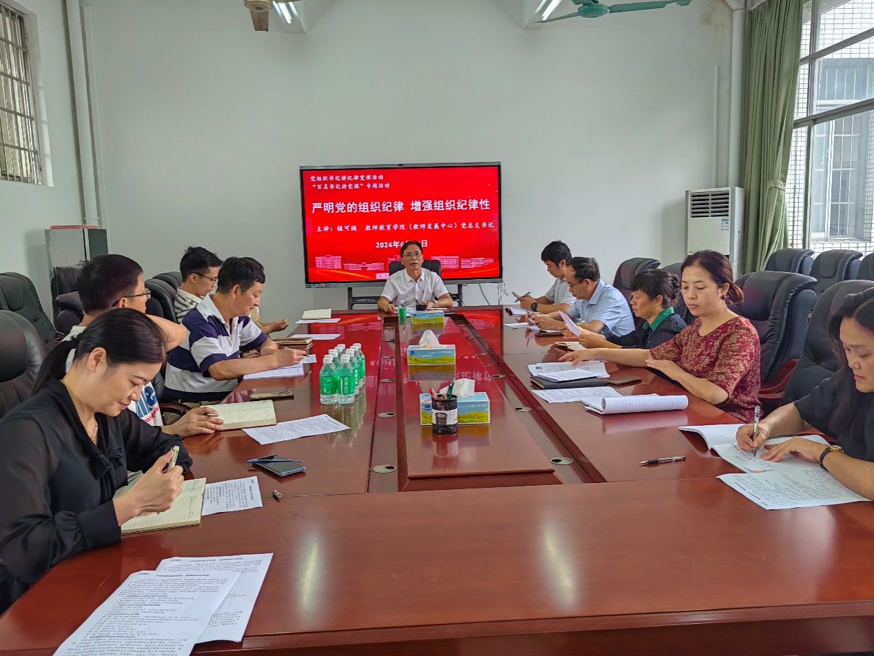 为进一步加强党的纪律教育,结合“百名书记讲党课”专题活动要求,6月27日,yl34511线路中心(教师发展中心)党总支组织开展题为“严明党的组织纪律 增强组织纪律性”的专题党课。党总支书记植可焕主讲,全体党员参加。