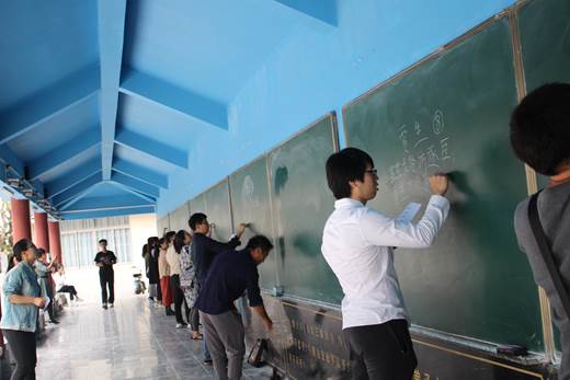 【本院讯】为强化教师职业技能,练好教学基本功,帮助教师更好地胜任教学工作,公司为2016-2017年新进青年教师举办粉笔字比赛。10月17日下午,来自全校19个院系的新进青年教师参加了本次比赛,比赛在教师发展中心板书长廊进行。