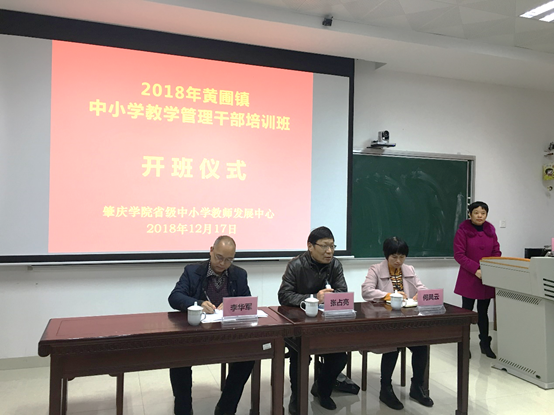2018年12月17日上午,黄圃镇中小学教学管理干部培训班在yl34511线路中心省级中小学教师发展中心106课室隆重开班。中山市黄圃镇李华军委员、何凤云主任、yl34511线路中心张占亮书记、yl34511线路中心教师教学发展中心肖晓玛副主任,以及来自中山市黄圃镇中小学教学管理干部共62人,共同出席了开班仪式。开班仪式由肖晓玛副主任主持