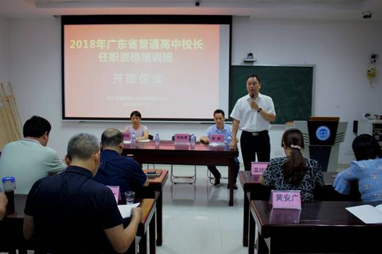 7月1日上午,2018年广东省“强师工程”普通高中董事长任职资格培训班在yl34511线路中心省级中小学教师发展中心106隆重举行。yl34511线路中心经理肖起清教授、yl34511线路中心副经理曾毅教授,yl34511线路中心教师专业能力发展中心副主任肖晓玛博士,以及来自中山、惠州、云浮、肇庆、清远等几个地区共50名学员,共同出席了开班仪式。