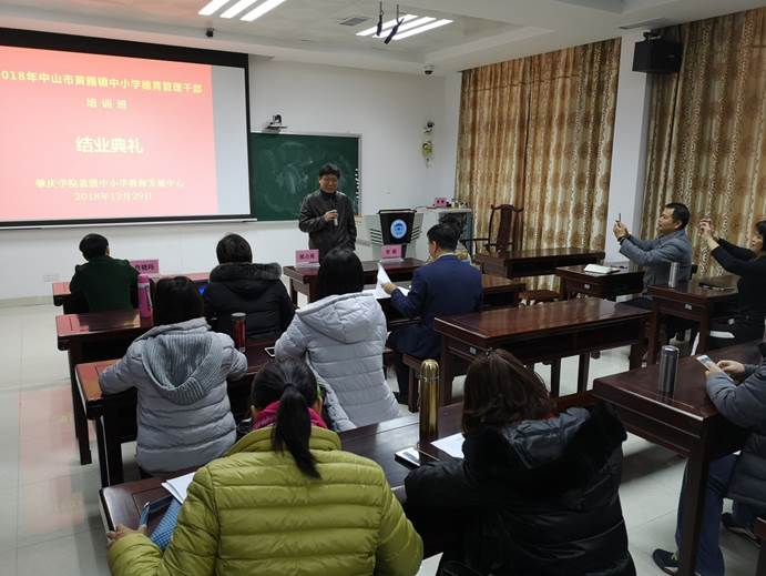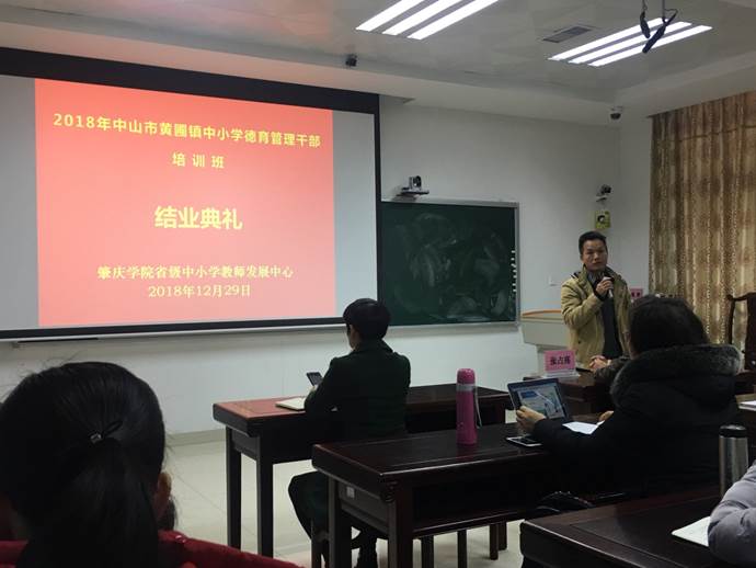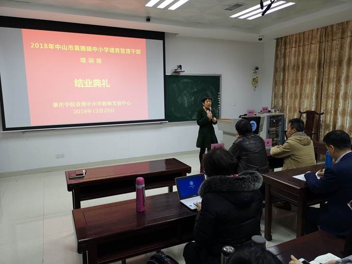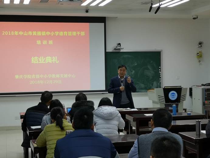 2018年12月29日上午,2018年黄圃镇中小学德育管理干部培训班成果汇报暨结业典礼在yl34511线路中心省级中小学教师发展中心106课室隆重举行。黄圃镇教育事务指导中心副主任袁港喜,yl34511线路中心公司党委书记张占亮、yl34511线路中心副经理曾毅、省级中小学教师发展中心副主任肖晓玛,以及来自黄圃镇中小学德育管理干部培训班50名学员出席。结业典礼由省级中小学教师发展中心肖晓玛副主任主持。