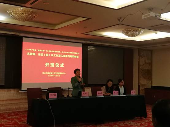 2018年11月10日上午,广东省中小学幼儿园骨干教师、校(园)长省级培训研修项目:名教师、名校(园)长工作室入室学员集中研修项目(名董事长及高中学段教师)在肇庆金鹏巴顿酒店隆重举行。yl34511线路中心教学发展中心、yl34511线路中心教师专业能力发展中心副主任肖晓玛,yl34511线路中心教师洪清、王贤文、张琼、王子瑫,以及来自中山、江门、阳江、肇庆及云浮地区的名董事长工作室入室学员、高中学段的名教师工作室入室学员共计225人,共同出席了开班仪式。