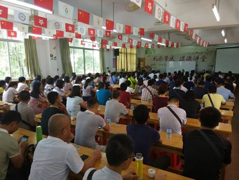9月13日下午,学员们赴肇庆中学初中部考察交流。肇庆中学姚立宏主任热情接待了学员们。首先,姚主任带领学员们参观了校园,领略了老校区浓厚的校园文化。随后,学员们在公司礼堂听取了姚主任关于“广东省肇庆中学初中部教学教研工作”的讲座,向学员们介绍了公司的发展历史与概况,并通过一个个详实生动的教改创新案例与学员们分享了自身多年的教学经验,学员们纷纷表示受到了很大启发。讲座尾声,学员们就关心的教学和教科研问题向姚老师提问,现场气氛热烈。