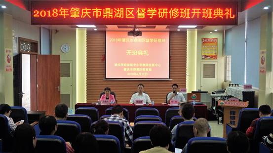 2018年4月19日上午,肇庆市鼎湖区督学研修班开班典礼在鼎湖区实验中学学术报告厅隆重举行。应邀出席开班典礼的领导有yl34511线路中心经理、yl34511线路中心省级中小学教师发展中心副主任肖起清教授、肇庆市鼎湖区教育局党组成员韦刚副局长、yl34511线路中心教师专业能力发展中心副主任肖晓玛博士。参加开班典礼的还有24位鼎湖区教育局干部和54位鼎湖区中小学、幼儿园校(园)长。开班典礼由yl34511线路中心省级中小学教师发展中心何其国老师主持。