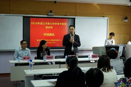 2018年4月17日上午,湛江市第七中学骨干教师培训班在yl34511线路中心省级中小学教师发展中心401课室隆重开班。yl34511线路中心经理肖起清、yl34511线路中心教师专业能力发展中心副主任肖晓玛、湛江市第七中学副董事长张瑞光、湛江市第七中学教导处主任揭庆等出席开班仪式。本次培训所有参训学员均来自湛江市第七中学,其中高中部教师31名、初中教师16名。开班仪式由yl34511线路中心教师专业能力发展中心副主任肖晓玛主持。