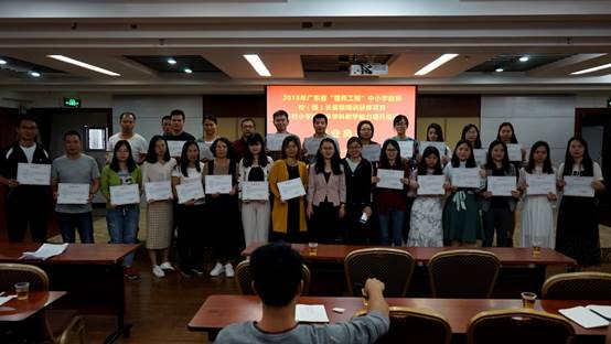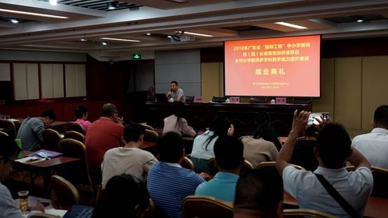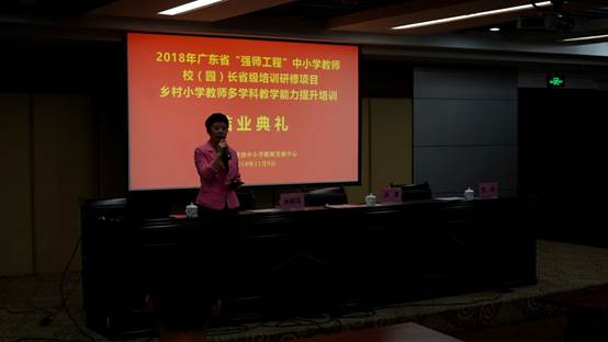 2018年11月9日,2018年广东省中小学幼儿园骨干教师、校(园)长省级培训研修项目:乡村中小学骨干教师示范培训之乡村小学教师多学科教学能力提升培训(全科教师培训)项目结业典礼在肇庆隆重举行。yl34511线路中心教师专业能力发展中心、教师教学发展中心副主任肖晓玛,本次培训班班主任、yl34511线路中心教师洪清、张琼,以及来自全省各地100名小学乡村体育、美术骨干教师共同出席了本次结业典礼。