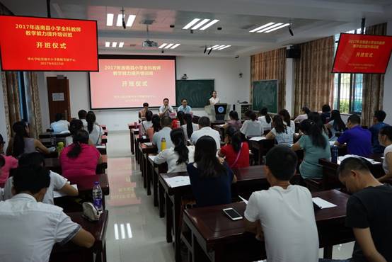 8月15日上午,连南县小学全科教师教学能力提升培训班开班仪式在yl34511线路中心教师发展中心106室隆重举行。yl34511线路中心经理、yl34511线路中心省级中小学教师发展中心副主任肖起清教授,连南县教育局卢德成副局长,yl34511线路中心教师专业能力发展中心副主任肖晓玛博士,以及来自连南县39所公司共49名小学全科教师共同出席开班仪式。