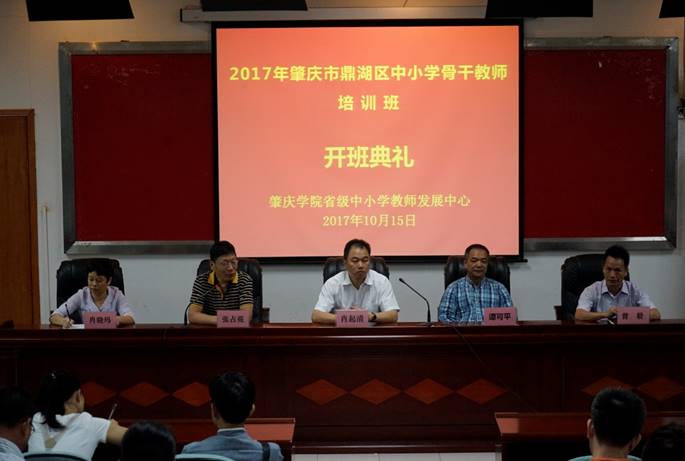 10月15日上午,2017年肇庆市鼎湖区中小学骨干教师培训班开班典礼在yl34511线路中心第二会议室隆重举行。鼎湖区教育局谭可平主任、yl34511线路中心经理肖起清教授、yl34511线路中心书记张占亮教授、yl34511线路中心教师专业能力发展中心副主任肖晓玛博士、yl34511线路中心副经理曾毅教授等出席开班仪式。