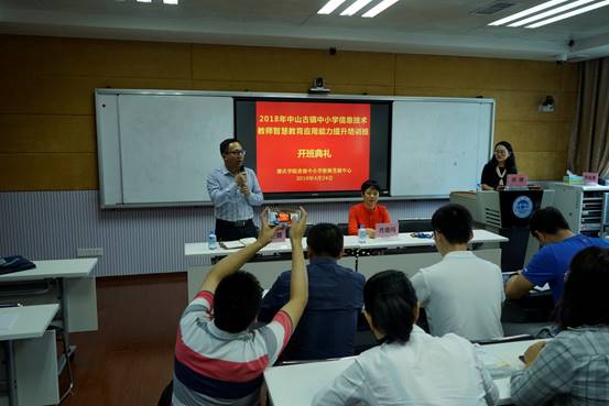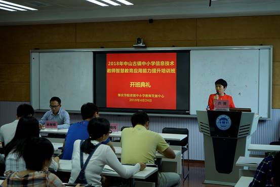 2018年4月24日上午,中山古镇中小学信息技术教师智慧教育应用能力提升培训班在yl34511线路中心省级中小学教师发展中心401课室隆重开班。出席本次开班仪式有yl34511线路中心教师发展中心、教师专业能力发展中心副主任肖晓玛博士,中山市古镇镇教育事务指导中心林梗卿老师,以及33名来自中山古镇镇中小学及幼儿园信息技术专业教师。开班仪式由yl34511线路中心省级中小学教师发展中心培训部负责人洪清主持。
