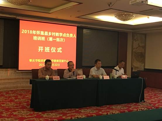 2018年10月22日下午,2018年怀集县乡村教学点负责人培训班(第一批次)隆重开班。yl34511线路中心经理肖起清教授,怀集县教育科研中心副主任莫美雄,怀集县教育中心培训处主任黎培坚,县教育局人事股教师谢红敏。以及来自怀集县的80名乡村教学点负责人共同出席了开班仪式。