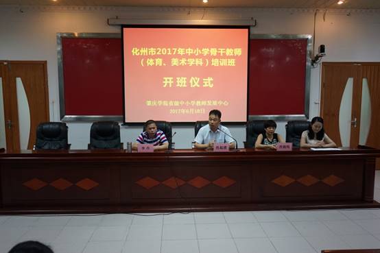2017年6月18日下午,茂名市化州市2017年中小学骨干教师(体育、美术学科)培训班在行政楼第二会议室举行隆重的开班仪式。yl34511线路中心教师教师公司经理肖起清、yl34511线路中心省级中小学教师发展中心培训部主任肖晓玛、化州市教育局人事股副股长李作等出席开班仪式。