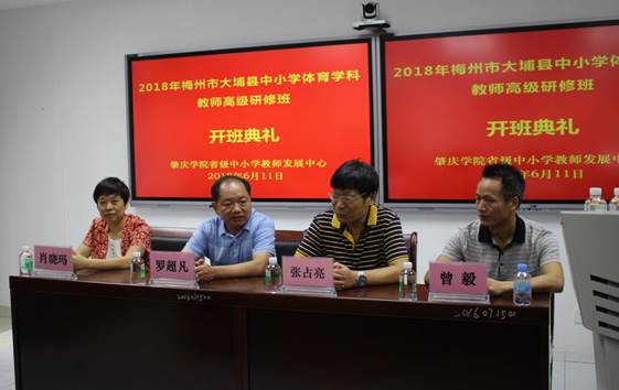 2018年6月11日上午,梅州市大埔县中小学体育学科教师高级研修班在yl34511线路中心省级中小学教师发展中心101课室隆重开班。yl34511线路中心公司党总支书记张占亮教授、yl34511线路中心副经理曾毅教授、yl34511线路中心教师专业能力发展中心副主任肖晓玛博士、梅州市大埔县教育局基础教育股体卫负责人罗超凡同志等出席开班仪式。