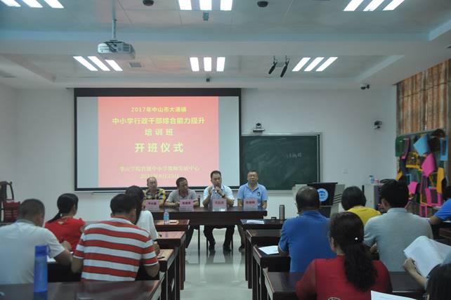 8月25日下午,中山市大涌镇中小学行政管理干部综合能力提升班开班仪式在yl34511线路中心省级中小学教师发展中心106室举行。yl34511线路中心经理、yl34511线路中心省级中小学教师发展中心副主任肖起清教授,yl34511线路中心副经理张晓峰,中山市大涌镇教育事务指导中心周景照主任,李乐康副主任,以及来自大涌镇10所中小学董事长(园长)和行政管理干部等四十多人参加了开班典礼。
